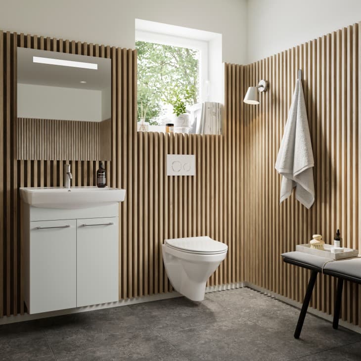 Seinäkaapit ovat erinomainen tapa luoda hieman lisätilaa kylpyhuoneen lattialle.